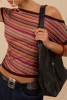 Burgundy Textured Stripes Knit Short Sleeve Cropped Sweater LC2727651-P503