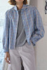 Sky Blue Lovelf Brooch Detailed Shirt with Pleated Shoulder Pleeled LC25613592-P205