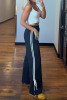 Black High Rise Colorblock Stripe Knot Side Straight Leg Pants LC7713449-P2