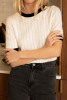 White Color Block Corded Knit Crew Neck Tee LC25227942-P1