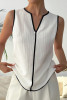 White Women Summer Keyhole Neckline Contrast Trim Tank Top LC25613494-P1