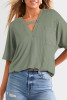 Jet Stream Button V Neck Lace Trim 3/4 Sleeve Peplum Blouse LC25133926-P2015