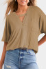 Khaki Stripe Round Neck Drop Shoulder Long Sleeve Top LC25225962-P1619