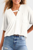 White Cotton Blend Short Sleeve Lace-up Neck Pleated Blouse LC25130696-P1