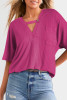 Pink Textured V Neck T Shirt and Shorts Set LC626339-P10
