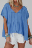 Sky Blue Stripe Exposed Seam Patchwork 3/4 Sleeve Loose Top LC25227218-P419