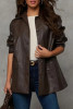 Coffee Quilted Textured Patchwork Loose Fit Hooded Jacket LC8513305-P1017