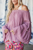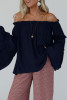 Dirty blue Tiered Ruffled Bell Sleeve Off Shoulder Blouse LC25133029-P1005