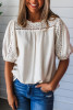 White Lace Short Sleeve Textured Round Neck Blouse LC25227458-P1