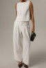 White Forever 21 Women's Solid Color Crew Neck Sleeveless Casual Loose Blouse LC25613571-P1