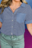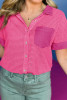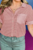 Pink Taupe Gauze Waffle Button Down Short Folded SleeveToP LC2555742-P10