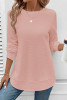 Pink Lace Edge Waffle Knit Cropped Short Sleeve Top with Slits LC25134233-P10
