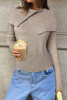 Chicory Coffee RUFFLED KNIT SWEATER LC2728154-P7017
