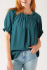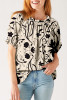Beau Blue Printed Short Sleeve Peasant Blouse LC25133972-P804