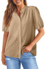 Beige Waffle Splicing Short Batwing Sleeve Flap Detail Shirt LC2556086-P15