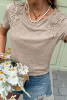 Smoke Gray Frenchy Women's Casual Holiday Solid Color Lace Trim Short Sleeve T-Shirt LC25229865-P7016