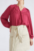 White Cotton Blend Short Sleeve Lace-up Neck Pleated Blouse LC25130696-P1