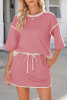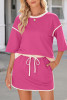 Pink Textured V Neck T Shirt and Shorts Set LC626339-P10