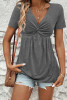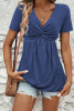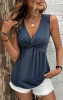 Sail Blue Women's Summer Casual Twist Front Gathered V-Neck Sleeveless Top LC25613493-P905