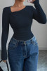 Gray Selianne Women's Mechanic Fabric Cowl Neck Asymmetrical Neck Flared Long Sleeve Asymmetrical Hem Stretch Fitted T-Shirt Fall Cloth For Women LC25231195-P11