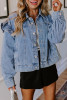 Dusk Blue Balloon Sleeve Button Down Jacket LC788954-P704