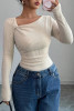 White Solid Color Ribbed Knit Asymmetric Neck Long Sleeve Top LC25231056-P101
