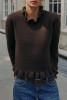 Coffee Lace Sleeve Mixed Media Top LC25135937-P1017