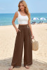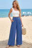 EVALESS Womens Beach Pants Summer Boho Drawstring Elastic Waist Hollow Out Textured Wide Leg Vacation Clothes LC7713854-P2